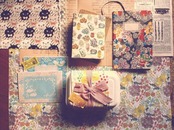 紙モノ作家『ant!ant!!ant!!!』のオリジナルイラストを使った、おリボンをつけたおすましねこちゃんの包装紙。