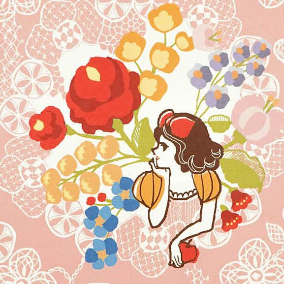 紙モノ作家『ant!ant!!ant!!!』のオリジナルイラストを使った、レースとお花と白雪姫の包装紙。