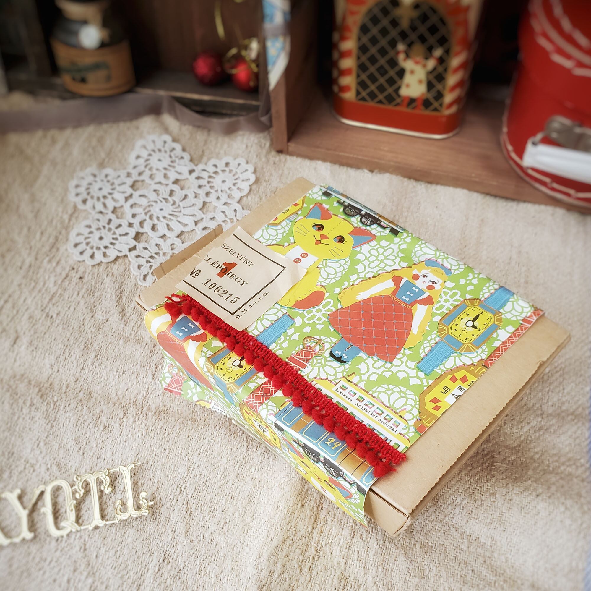 紙モノ作家『ant!ant!!ant!!!』のオリジナルイラストを使った、キッチュでカラフルなおもちゃ柄の包装紙。