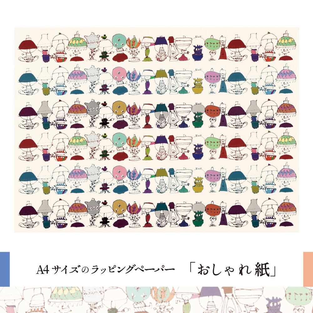 紙モノ作家『ant!ant!!ant!!!』のオリジナルイラストを使った、ずらりと並んだレトロなランプの包装紙。