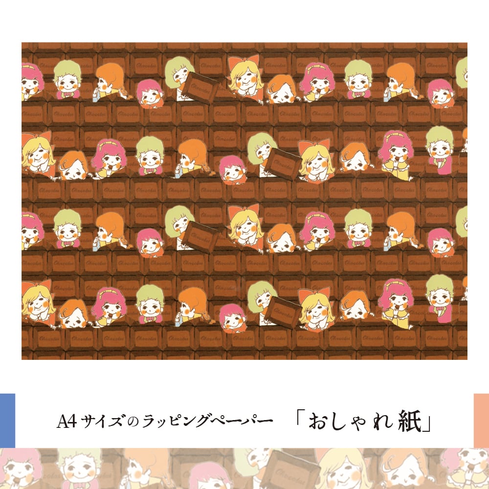 紙モノ作家『ant!ant!!ant!!!』のオリジナルイラストを使った、チョコレートをおいしそうに頬ばる子どもたちの包装紙。