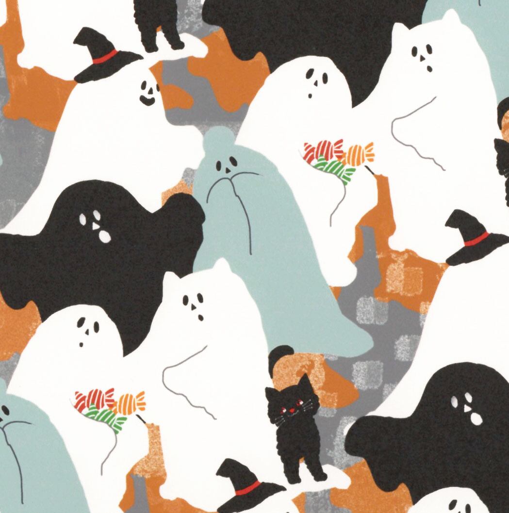 紙モノ作家『ant!ant!!ant!!!』のオリジナルイラストを使った、シーツをかぶっておばけの気分な包装紙。