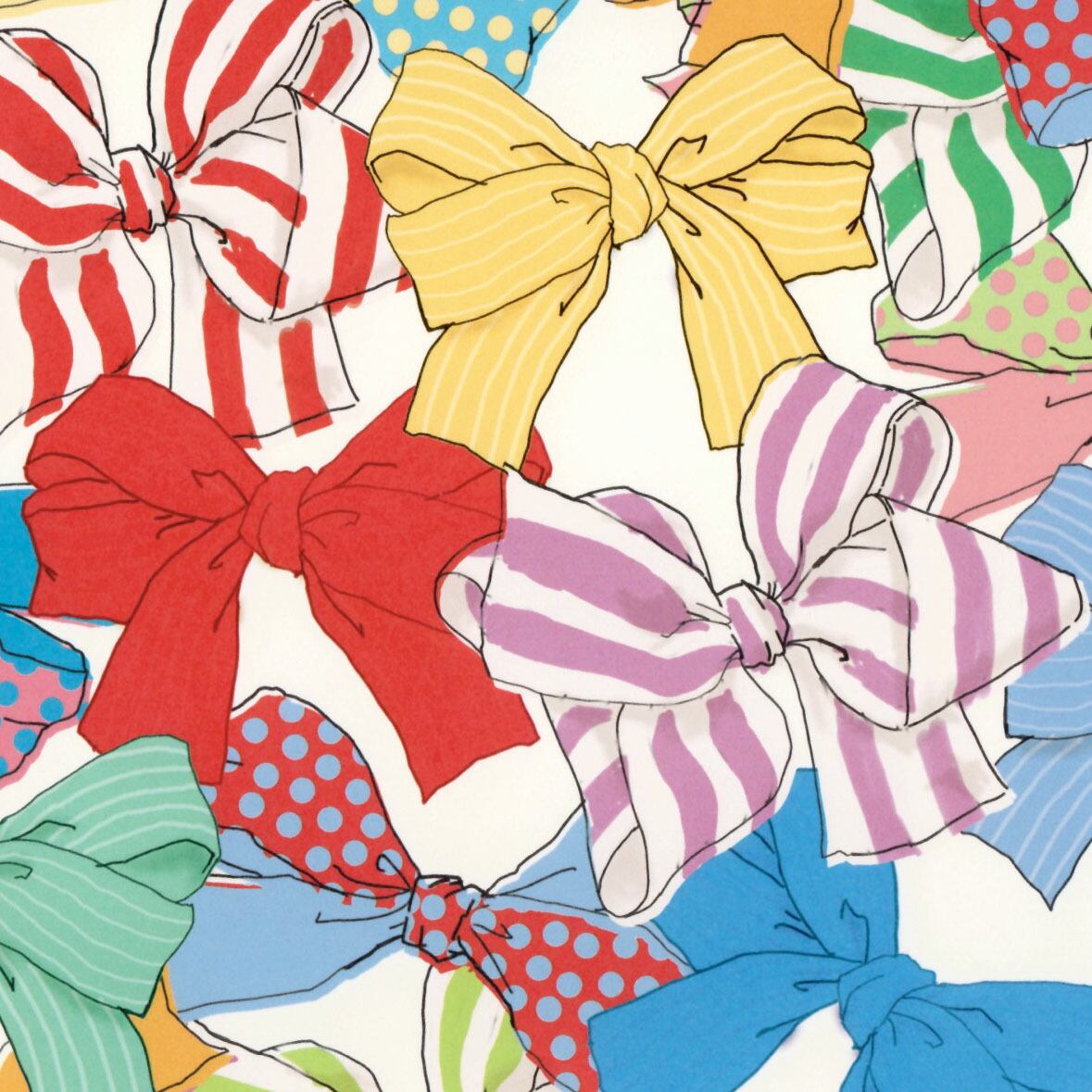 紙モノ作家『ant!ant!!ant!!!』のオリジナルイラストを使った、カラフルなリボンの包装紙。