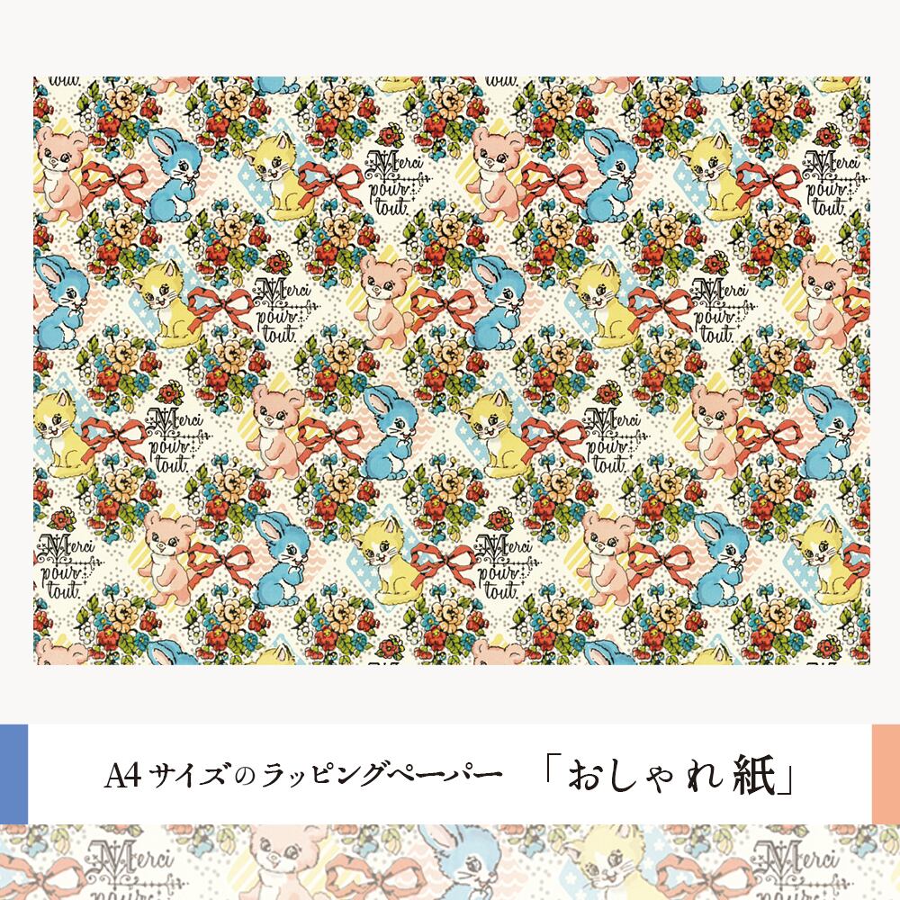 紙モノ作家『ant!ant!!ant!!!』のオリジナルイラストを使った、レトロでキュートな動物たちの包装紙。