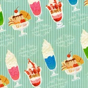 紙モノ作家『ant!ant!!ant!!!』のオリジナルイラストを使った、おいしそうなパフェとクリームソーダ、プリンアラモードの包装紙。