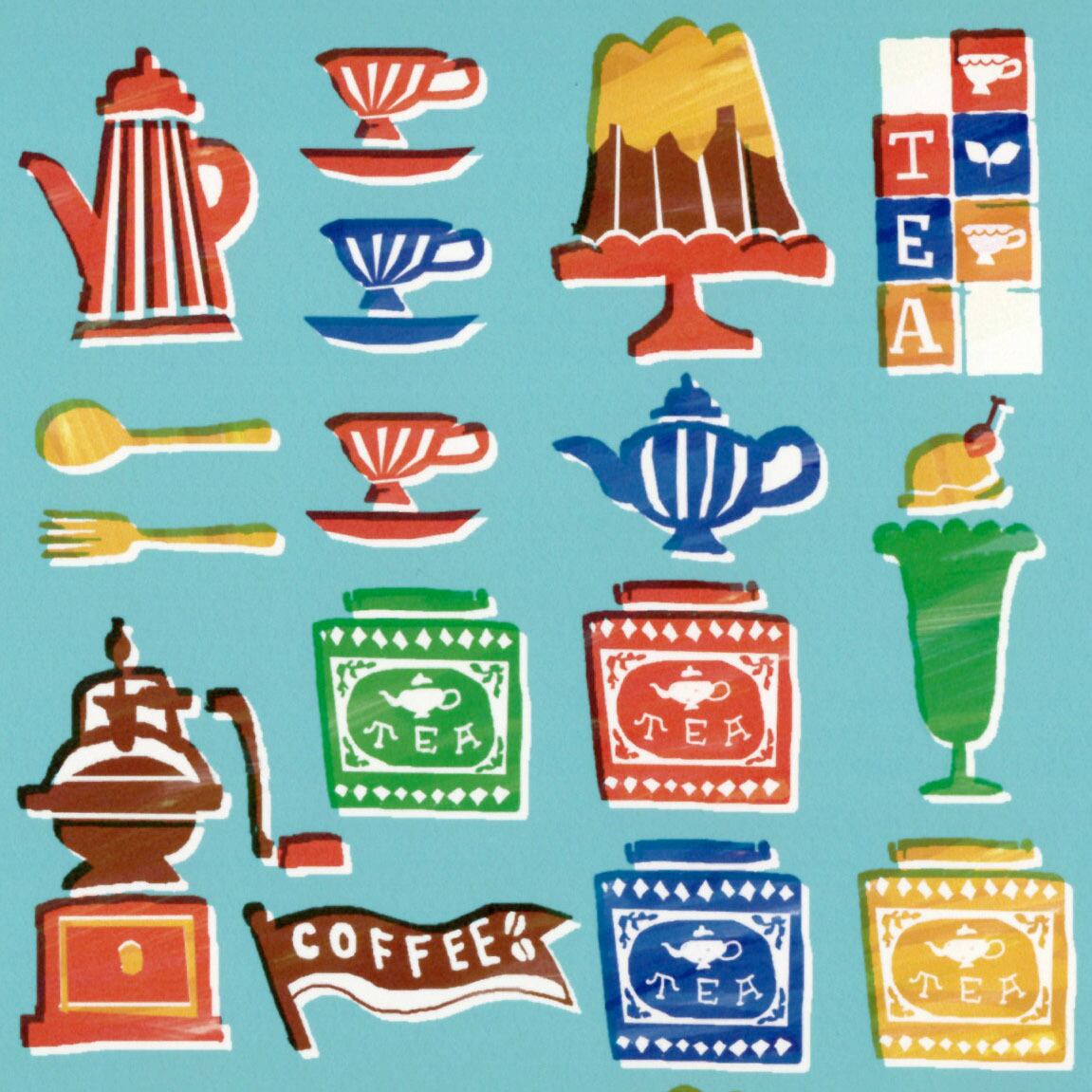 紙モノ作家『ant!ant!!ant!!!』のオリジナルイラストを使った、スタンプ調のキッチン道具達の包装紙。