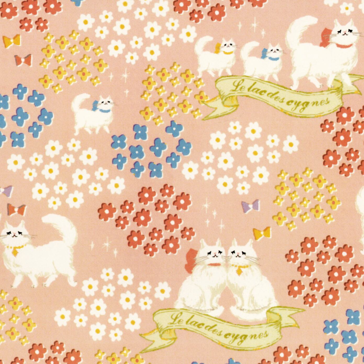 紙モノ作家『ant!ant!!ant!!!』のオリジナルイラストを使った、お花畑をお散歩する猫の親子の包装紙。