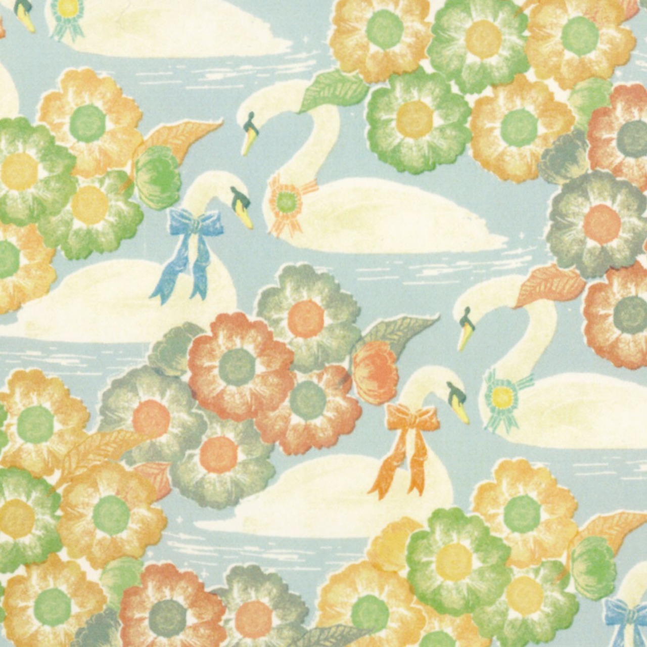 紙モノ作家『ant!ant!!ant!!!』のオリジナルイラストを使った、おごそかな白鳥のほとりの包装紙。