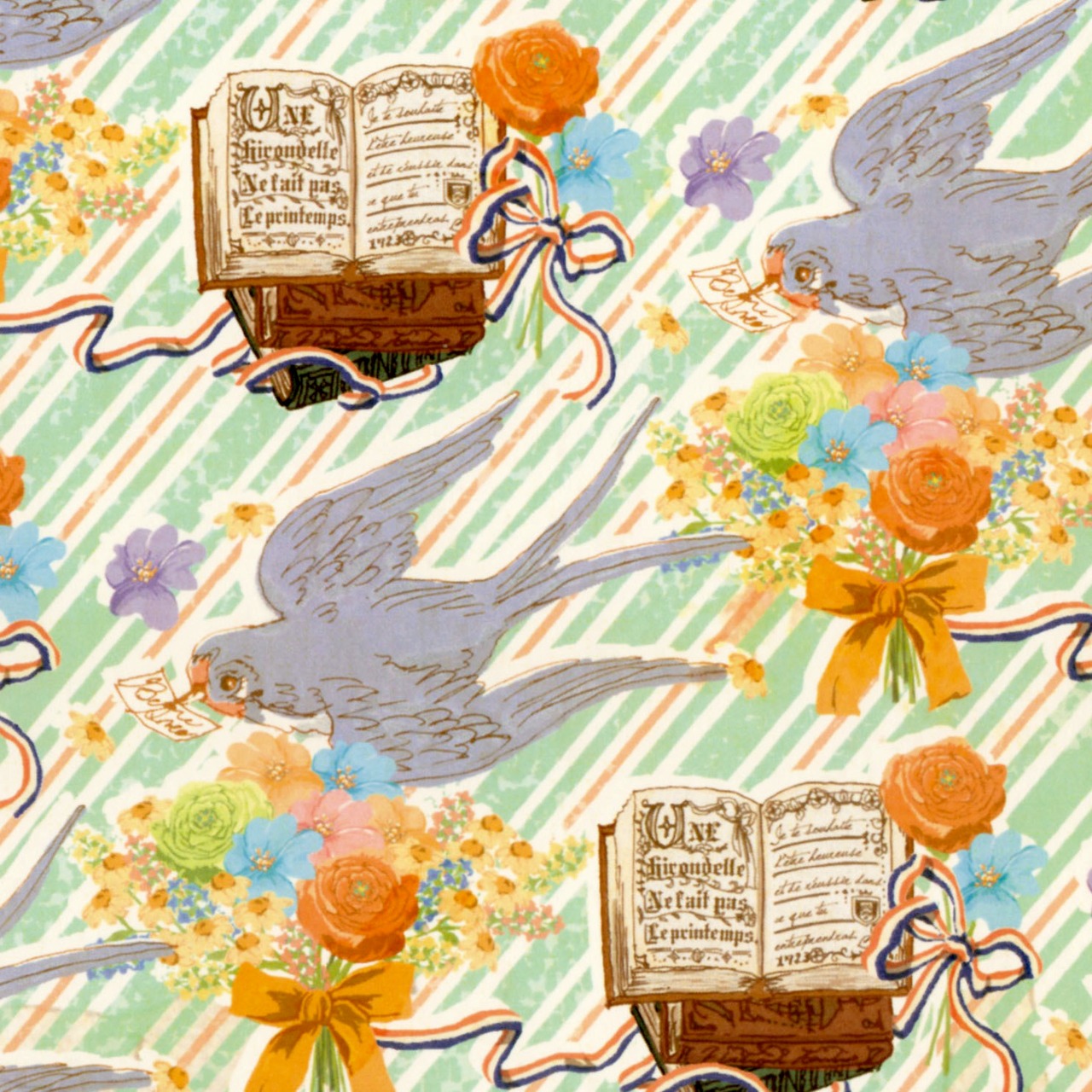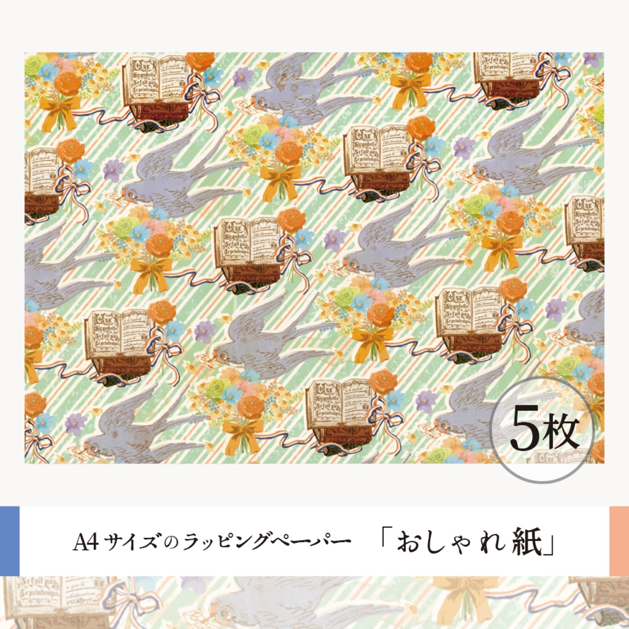 紙モノ作家『ant!ant!!ant!!!』のオリジナルイラストを使った、飛び回っている配達つばめの包装紙。