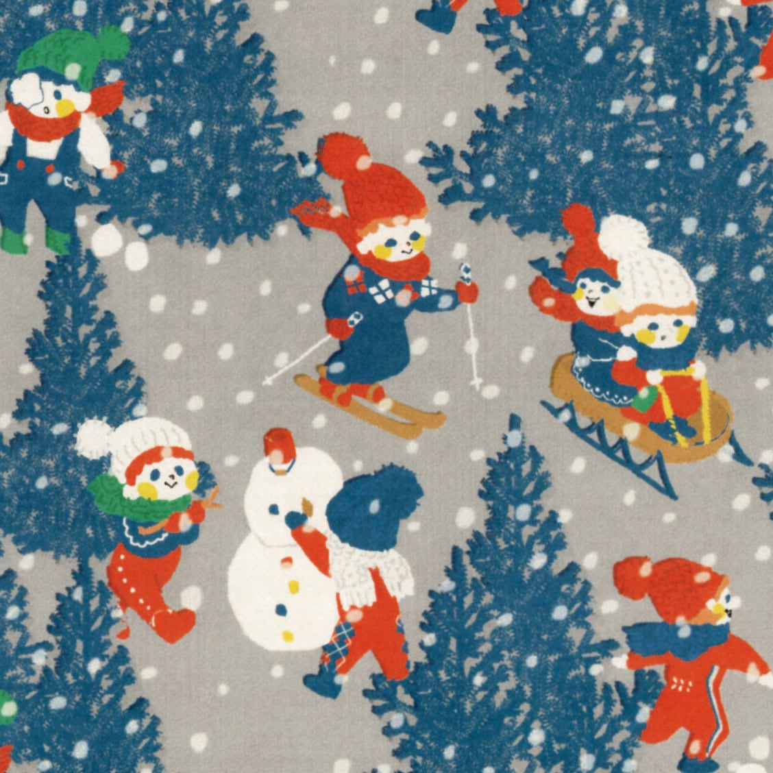 紙モノ作家『ant!ant!!ant!!!』のオリジナルイラストを使った、スキーを楽しむ子どもたちの包装紙。