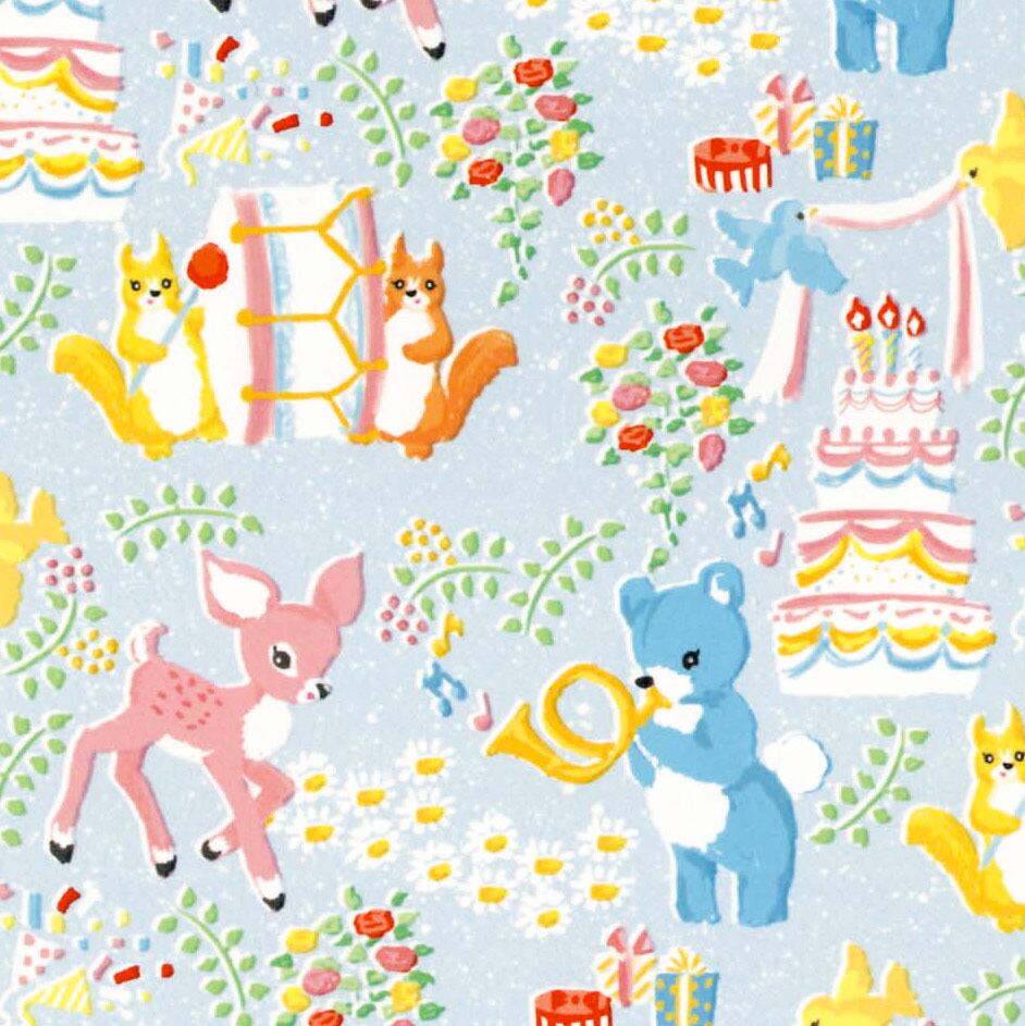 紙モノ作家『ant!ant!!ant!!!』のオリジナルイラストを使った、動物たちのパーティーの包装紙。