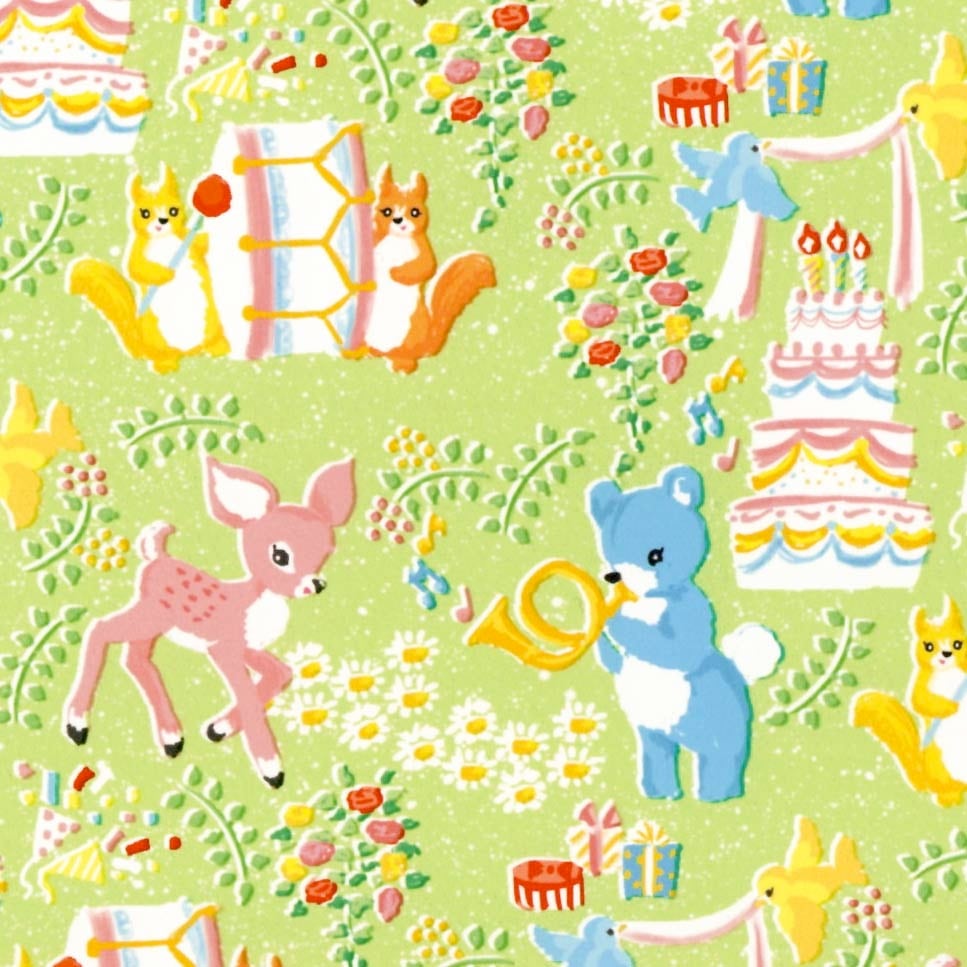 紙モノ作家『ant!ant!!ant!!!』のオリジナルイラストを使った、動物たちのパーティーの包装紙。