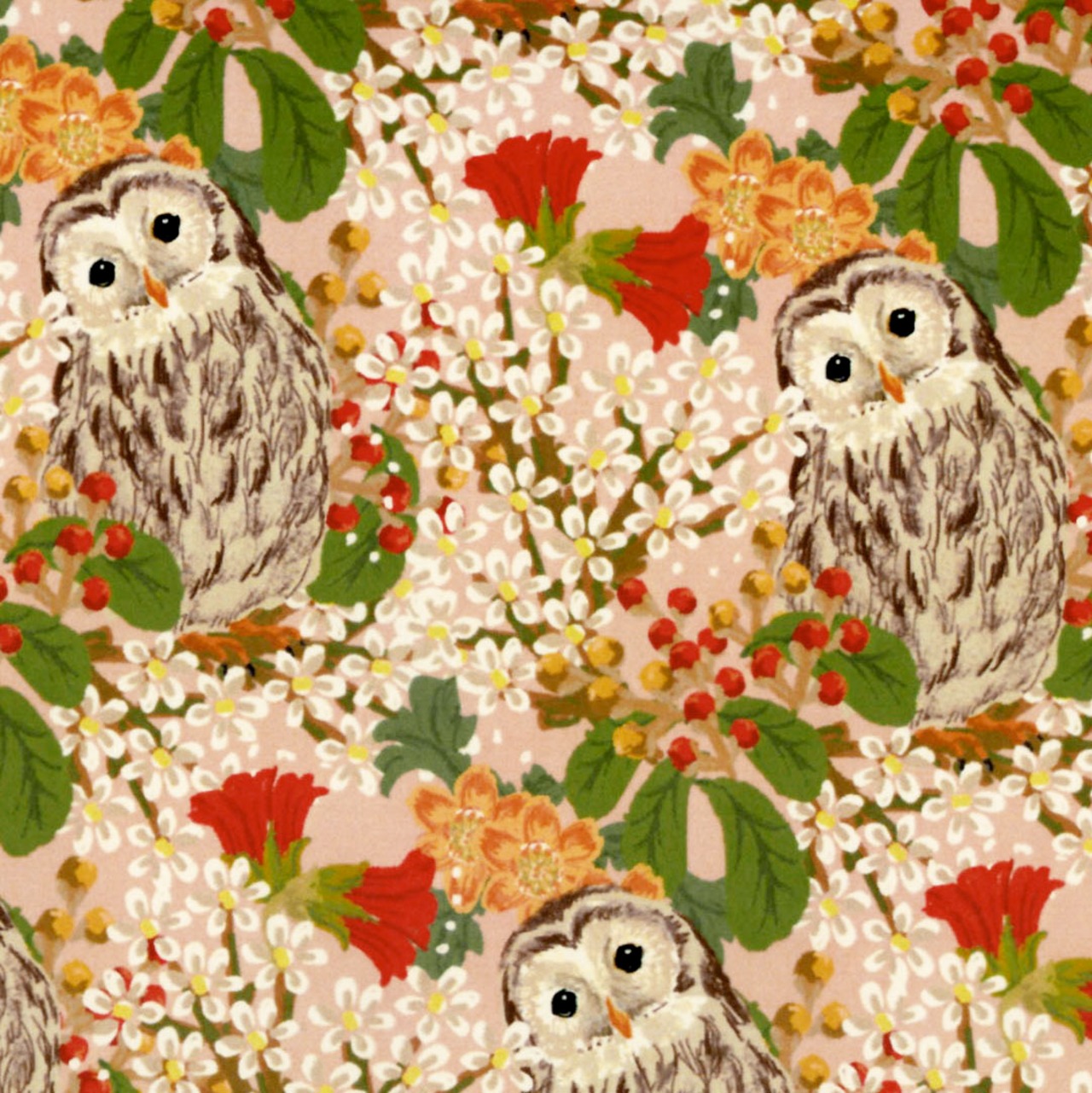 紙モノ作家『ant!ant!!ant!!!』のオリジナルイラストを使った、お花とふくろうの包装紙。