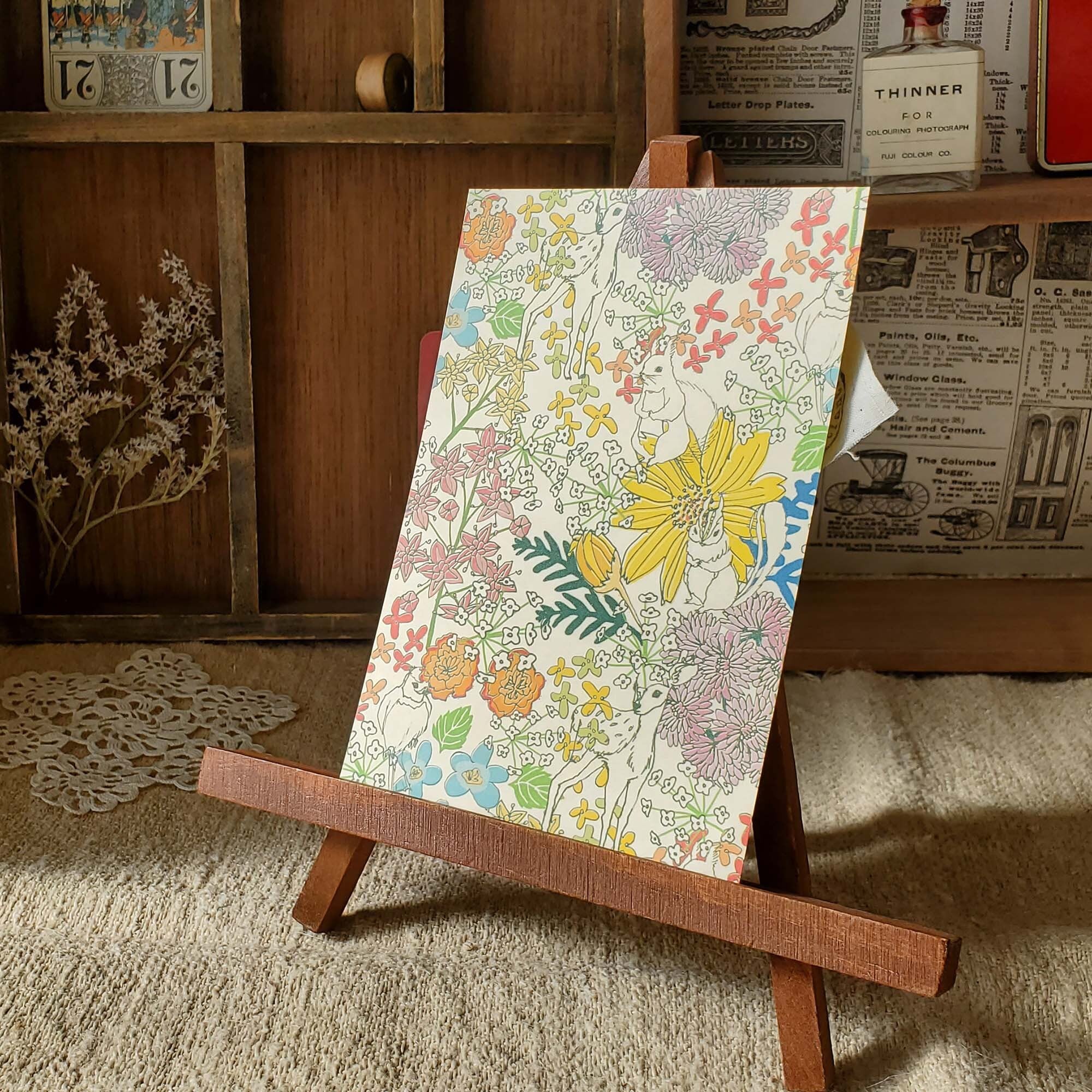 たくさんの動物やお花のポストカード