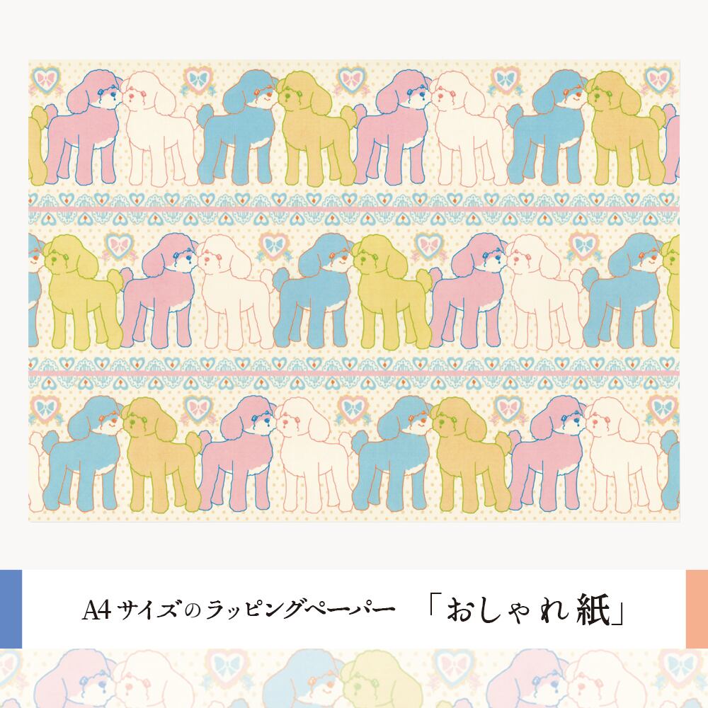 紙モノ作家『ant!ant!!ant!!!』のオリジナルイラストを使った、パステルカラーのラブリーなプードルの包装紙。