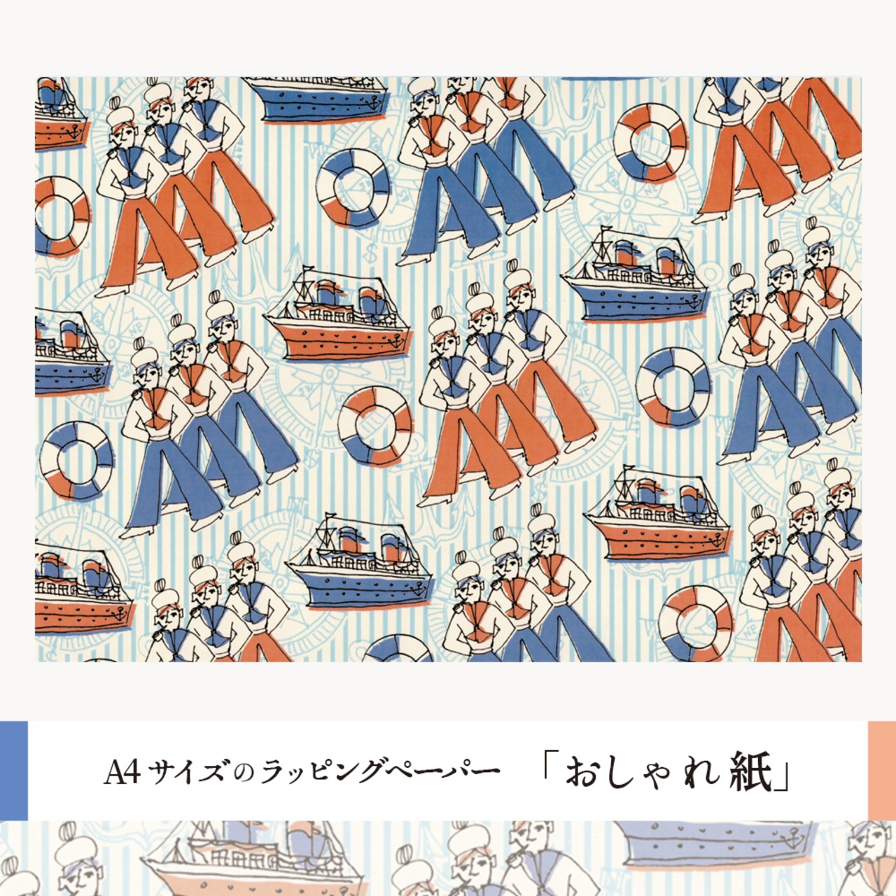 紙モノ作家『ant!ant!!ant!!!』のオリジナルイラストを使った、トリコロールなおとぼけ顔の水兵さんの包装紙。