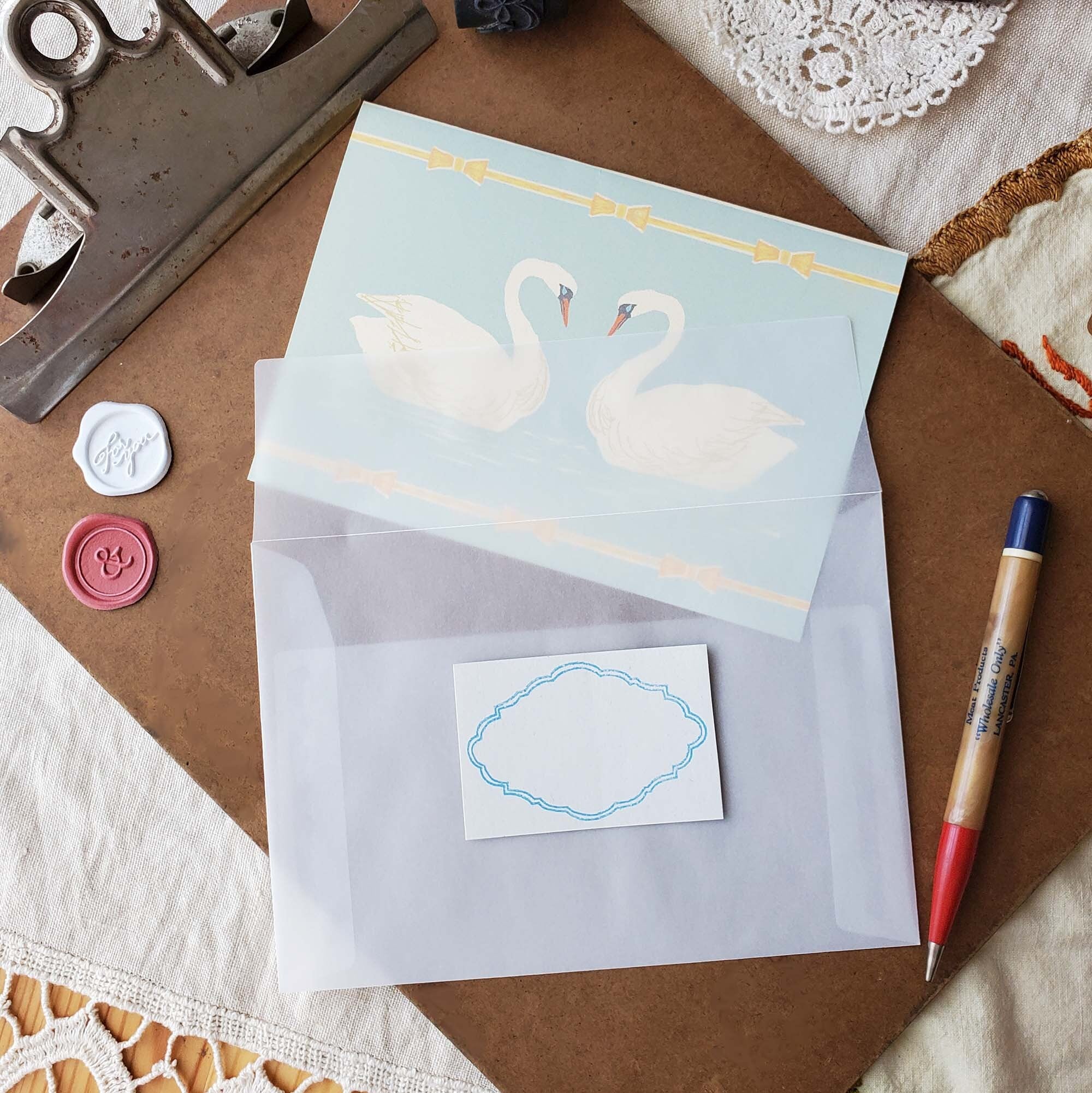 【向かいあったスワンとリボンがポイントのおもてなしカード】