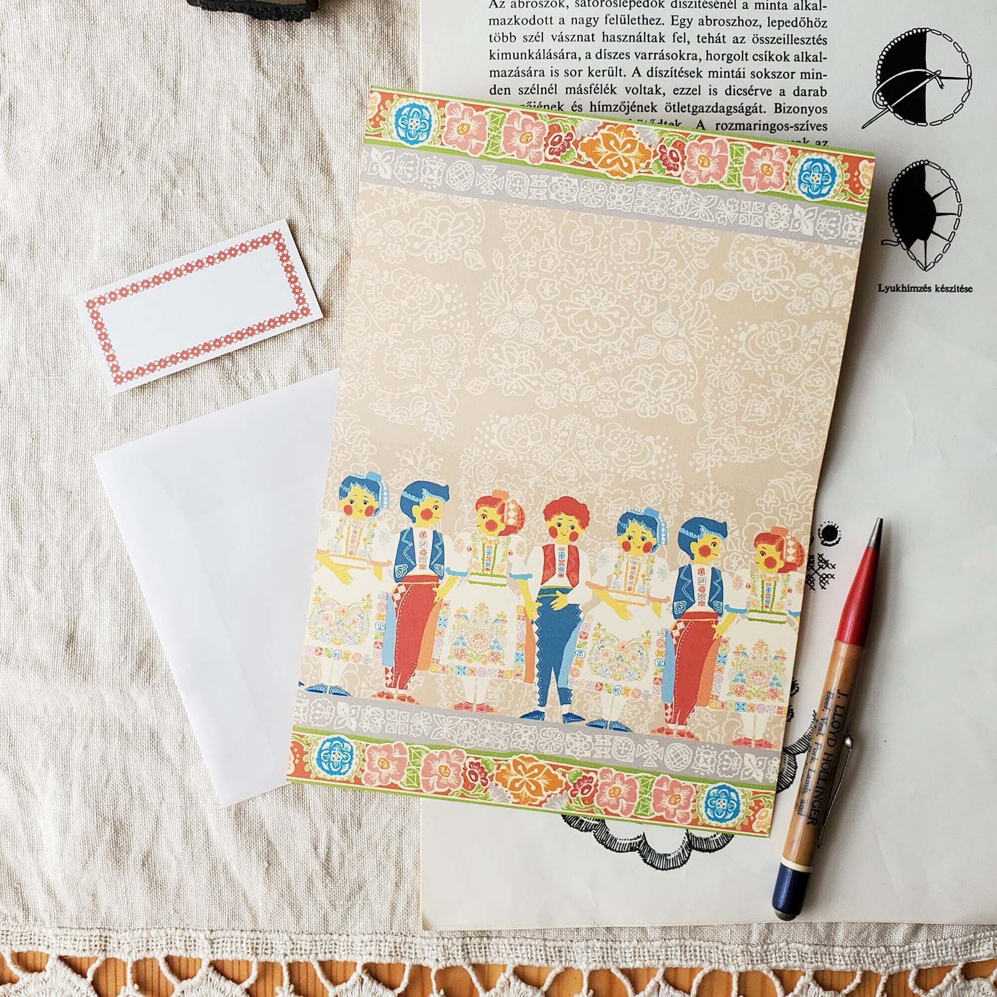 【カラフルな刺繍のフォークロアのおもてなしカード】
