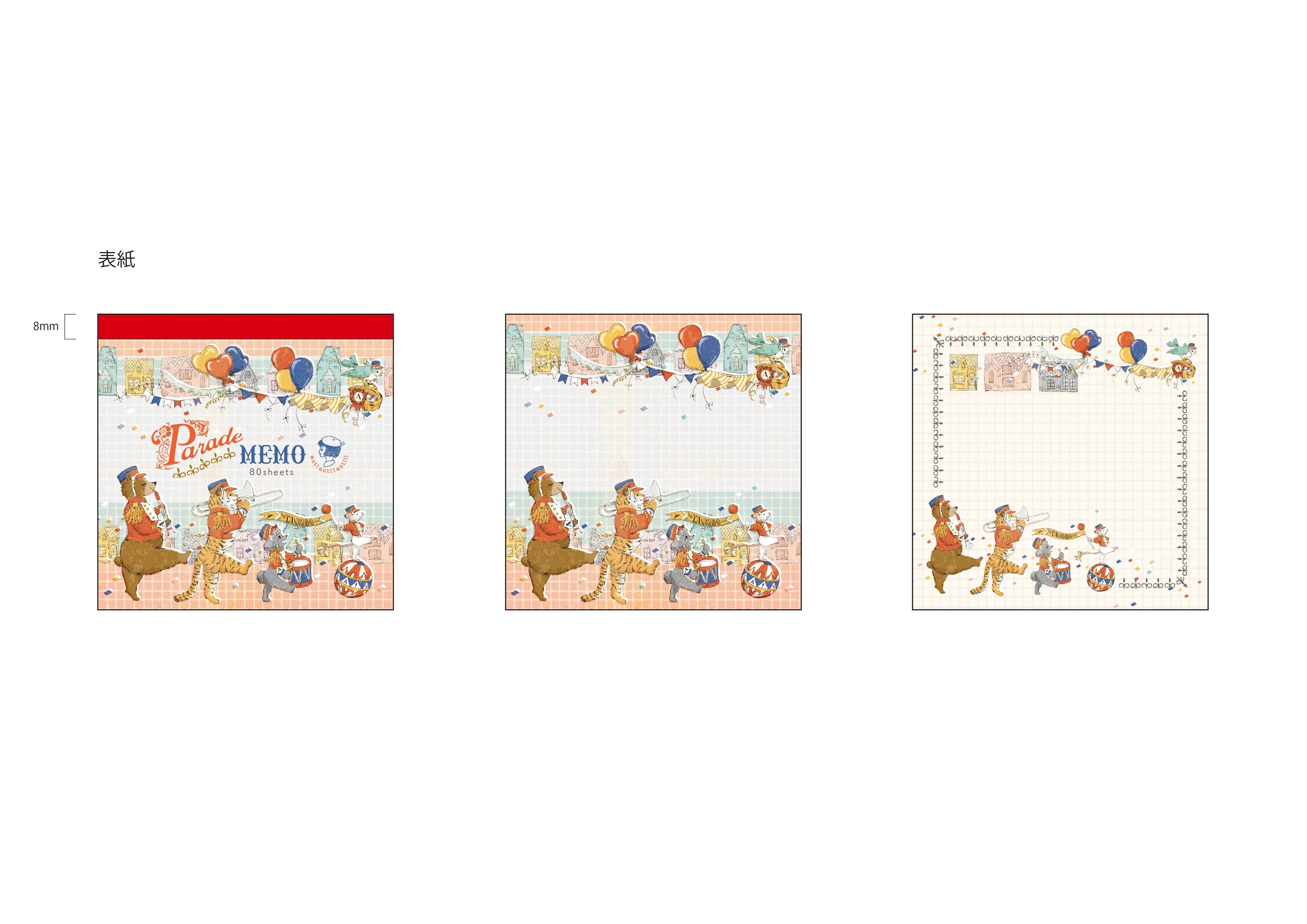 AN065-0128 ましかくメモ帳「今日はパレード」