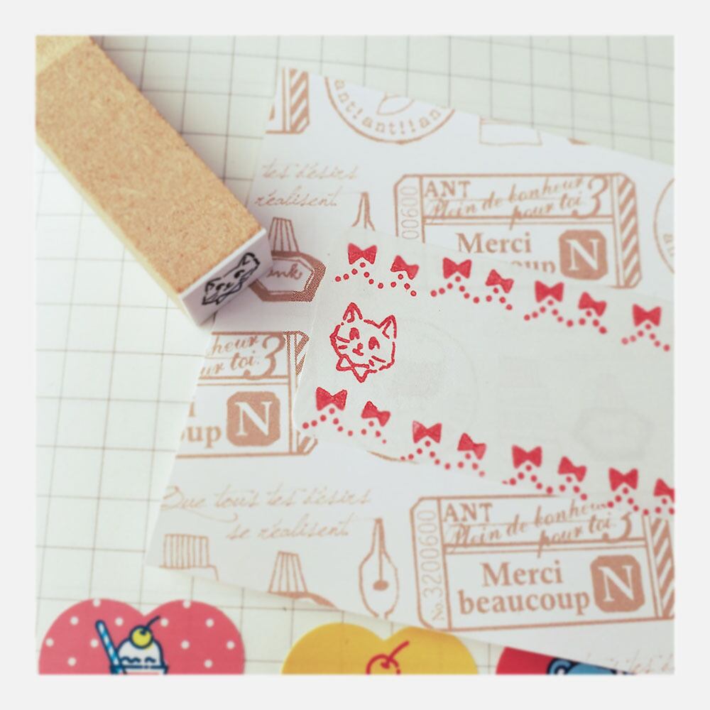 持ち手はエコな素材、MDF。ゴム印面はオレンジです。